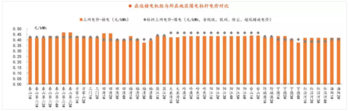 核電標桿上網電價高于核電機組所在地燃煤機組標桿上網電價的地區,執行當地燃煤機組標桿上網電價。