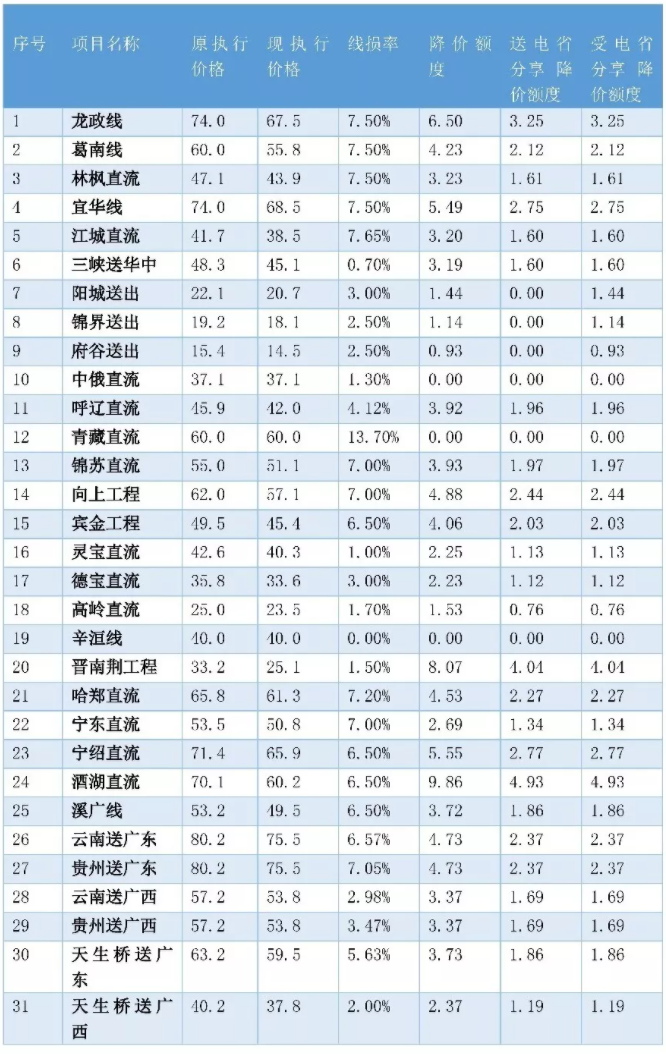 在今年4月份國家出臺政策降低跨省跨區專項工程輸電價格,跨省跨區價格平均下降3.55厘/度,降幅約6.9%。