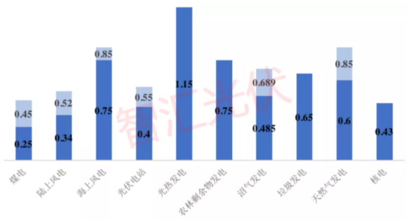 目前,各類發電項目的電價范圍大致如下圖所示。