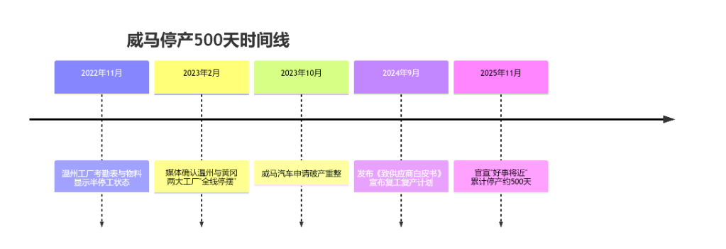 2022年12月,有消息稱,由于拖欠供應商貨款,威馬工廠已陷入停產狀態。一位當地人士透露:“現在溫州工廠里都沒人了?!?/span>
