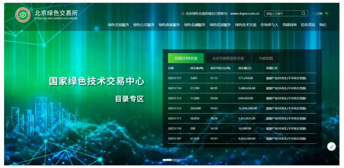 (2)  北京綠色交易所:全國CCER集中交易平臺