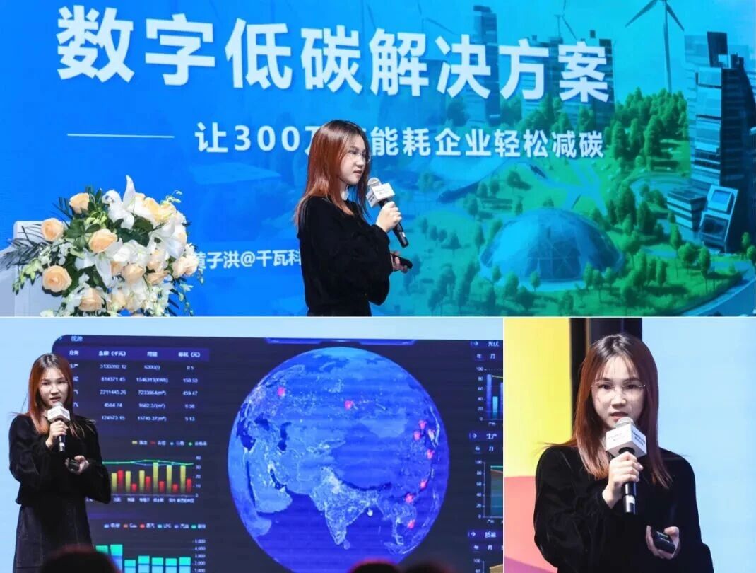活動現場,千瓦科技的黃子洪女士登臺分享,以“數字低碳解決方案”為主題,深入剖析了當前產業低碳轉型面臨的痛點與挑戰,并結合公司實踐案例,系統闡述了千瓦科技在數字技術與低碳發展融合方面的創新成果。