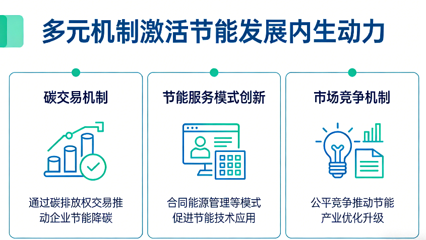 市場作為節能雙輪驅動體系中的 “效率引擎”,通過構建可量化、可交易、可持續的多元機制,將節能從政策要求轉化為市場選擇,推動節能工作從"要我省"向"我要省"轉變。