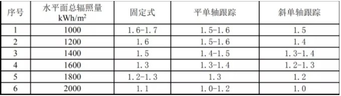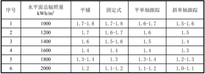 單面組件容配比典型地區算例結果