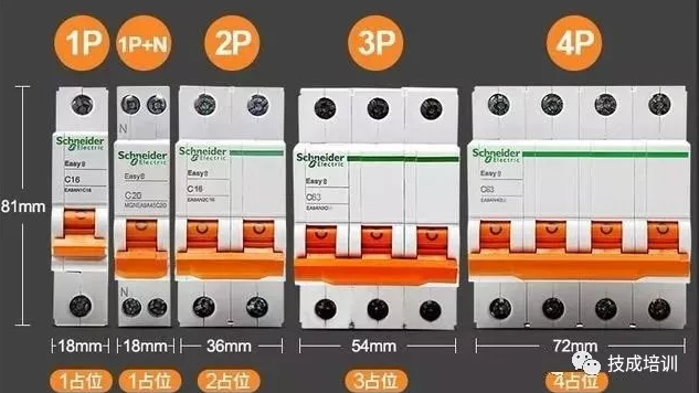 其實除了1P、2P之外,還有3P、4P等。如果我們對于空開了解不多,我們可以從它們的寬度上進行區別,一般每1P的寬度是遞增的,1P空開的寬度是18毫米,那么相應2P空開的寬度就是36毫米,3P、4P依次遞增!