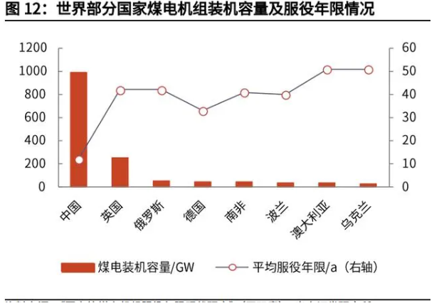 在陡峭的碳排放量下降曲線背后,是規模化的經濟結構轉型。這意味著我國當前 經濟結構下相當規模的存量資產將失去原有功能。煤電資產擱淺的問題,表明了轉型需經歷陣痛。一方面,從能源結構和自身稟賦 來看,我國的能源消耗以煤為主,煤電發電量在 2019 年占總發電量的 65%,遠 超發達國家;另一方面,我國煤電機組的平均服役年限僅 12 年,而發達國家普 遍達到 40 年以上。更快的碳排放量下降斜率,意味著將會有大量的未達到退役 年限的煤電資產提前“擱淺”。根據牛津大學 2017 年研究,在不同的情景假設下,我國煤電擱淺資產規模估算 可能高達 30,860-72,010 億元(合 4,490-10,470 億美元),相當于中國 2015 年 GDP 的 4.1-9.5%。由于近年來我國仍在新建煤電機組,實際擱淺規模可能更 大。