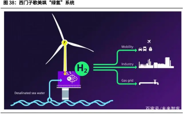 在每年光伏、風電新增裝機量的測算基礎上,我們將進一步測算可再生能源發電 設施建設所需要的投資規模。(1)預測光伏、風電、儲能的單位投資成本保持下降趨勢,到 2030 年分別達 到 0.371 元/瓦、5.63 元/瓦、1.03 元/瓦時,到 2060 年分別達到 1.35 元/瓦、 4.5 元/瓦、0.5 元/瓦時。結合我們對光伏、風電、儲能新增裝機預測,可以得到 2021-2060 年每年在可 再生能源發電端所需要的投資規模。我們預測“碳中和”將為可再生能源發電領 域累計增加約 84 萬億元人民幣的新增投資,其中光伏、風電裝機建設投資規模 約 60 萬億元,儲能設施投資規模約 24 萬億元。在能源供給側脫碳的過程中,氫能與電能同為重要的二次能源,扮演著重要作用, 如重工業(高溫-超高溫環境)、道路交通(氫燃料汽車)、大規模儲能、船運 等。目前,電解水制氫的成本仍較高。根據能源轉型委員會的預測,隨著電解槽成本 下降,未來電解水制氫將成為主流方法。要實現“零碳”排放,電解水所需的電 力也必須來自于可再生能源,由此產生的氫氣稱為“綠氫”。海上風電制氫(直接在風機附近制氫)是海上風電未來發展的重要方向,主要有 兩個原因:1)隨著海上風電離岸越來越遠,外送電纜投資成本也逐步攀升,而利用風機所 發電力將水電解產生氫氣后,通過比電纜便宜得多的管道將氫氣送到岸上,甚至 有些海域有現成的天然氣管道可供使用;