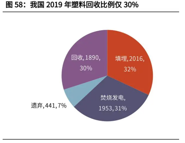 再生資源的回收利用可以有效減少初次生產過程中的碳排放。目前來看,市場潛 力主要集中在三大領域:1)高耗能行業(鋼鐵、水泥、鋁和塑料)的產品再生;2)廢棄物(秸稈、林業廢棄物、生活垃圾)的能源化利用;據世界鋼鐵協會預測,從中長期來看,過去二十年中國鋼材消費量的迅速增長, 將帶動中國國內的廢鋼資源快速增長。在未來數年里,中國國內的廢鋼供應量可 滿足中國的煉鋼需求。鋼鐵行業的電氣化趨勢(電爐代替高爐)與廢鋼的利用屬于同一路徑。對比發達 國家,我國的電爐鋼產量占比處于較低水平。電解鋁的碳排放來源主要包括:電力消耗、碳陽極消耗、陽極效應導致全氟化碳 排放。再生鋁可以有效減少初次生產的能耗與碳排放,目前我國的再生鋁產量占 比同樣處于較低水平。在化工行業的數千種產品中,僅氨、甲醇和 HVC(高價值化學品,包括輕烯烴 和芳烴)三大類基礎化工產品的終端能耗總量就占到該行業的四分之三左右。據上海市再生資源回收利用行業協會披露,2019 年我國產生廢塑料 6300 萬噸, 回收量 1890 萬噸,回收率僅 30%。根據能源轉型委員會研究,2050 年,中國的塑料需求中 52%可由回收再利用的 二次塑料提供,初級塑料產量與國際能源署的照常發展情景中的回收率水平下的 產量相比減少 45%,HVC 和甲醇的需求分別較照常發展情景大幅減少 40%和 18%。