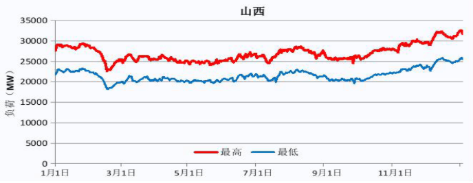 可以看出,山西的用電量是非常大的,工作日用電負(fù)荷量較節(jié)假日同比增長約20%,起伏較小,這是因為山西重工業(yè)產(chǎn)業(yè)比較多,24小時不間斷生產(chǎn),所以每個時間段用電量也沒有太大起伏 |