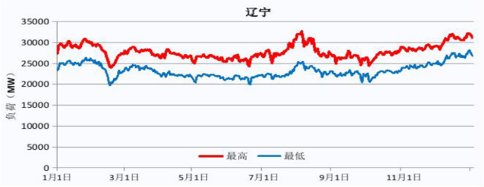 全年日最高、最低負荷曲線 | 用電高峰月 | 1、2、8、12 |