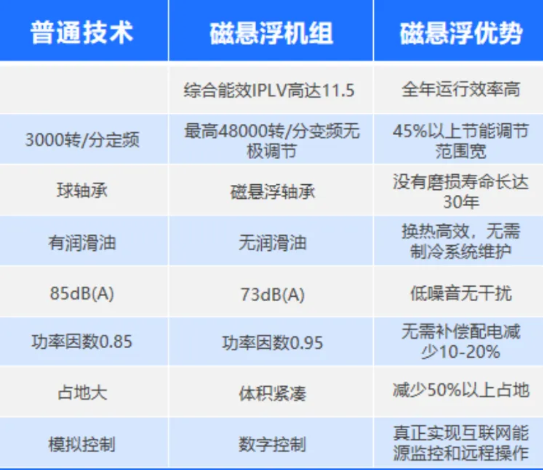 磁懸浮機組和傳統(tǒng)冷水機組對比