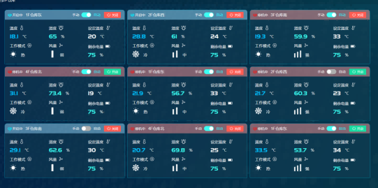 實時監(jiān)控末端內(nèi)機開關(guān)狀態(tài)、設(shè)定溫度、風量設(shè)置等;監(jiān)控外機的耗電量,并通過后臺算法處理分配,出具合理的空調(diào)費用賬單。