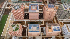 建筑屋頂上安裝了大量光伏板,室外地面還鋪設了淺色地磚增強光反射,避免熱島效應。室內則利用地溫冷卻系統將冷水泵入公寓,讓室內外實現“6-10攝氏度”的溫差,房間內還會配備電風扇,而不安裝空調。