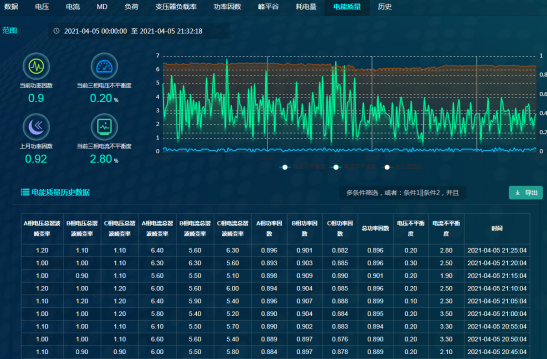 監測電壓、電流、三相不平衡、功率因數等運行參數,溫濕度、煙感、剩余電流等安全參數,優化變壓器負載率,改善電能質量,降低安全事故風險。
